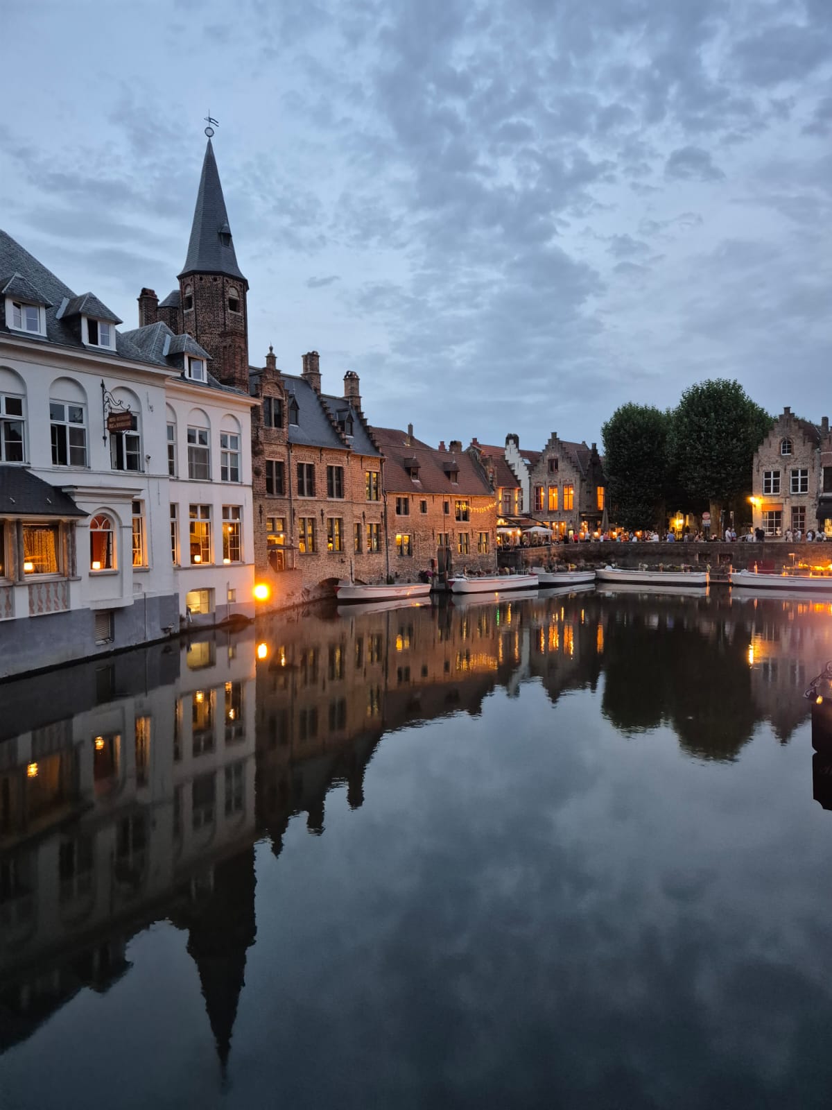 Gent empfängt uns mit der dicken Luft des hängenden Regens und dem für Belgien typischen hellgrauen Himmel. Es fühlt sich an, als wären wir ins Mittelalter katapultiert worden. Wir gehen am Fluss Leie entlang, wo sich Häuser mit spitzen Dächern spiegeln. Der melodiöse Klang der 54 Glocken der Kathedrale begleitet uns durch die gepflasterten Straßen. Das Schloss der Grafen von Flandern sieht aus wie aus einer nordischen Sage, und als wir die Mauern erklimmen, bietet sich uns ein Blick auf rote Dächer, so weit das Auge reicht.