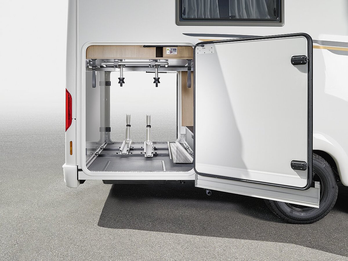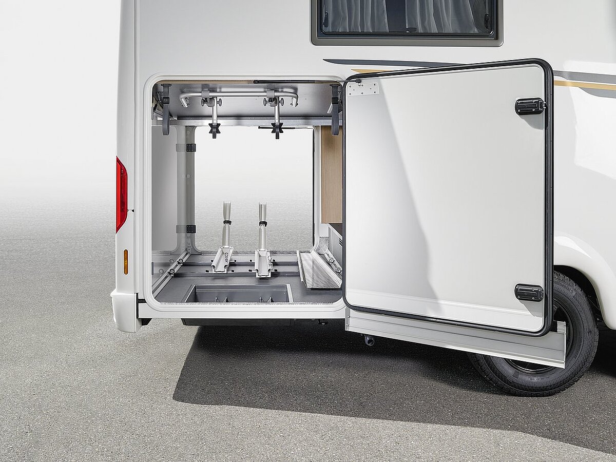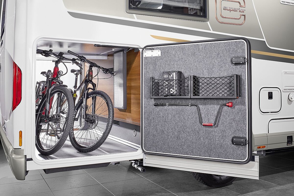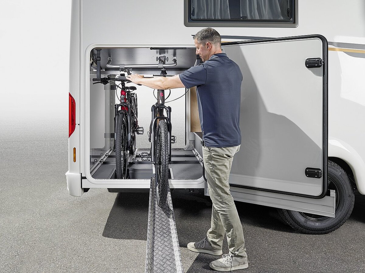 Ihr großes Rad oder das Pedelec passt nicht in die Rollergarage des Wohnmobils? Bei Carthago ist dies auch bei den Queensbett-Modellen kein Problem.