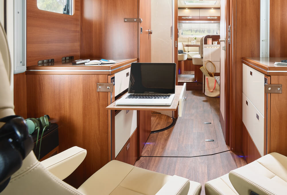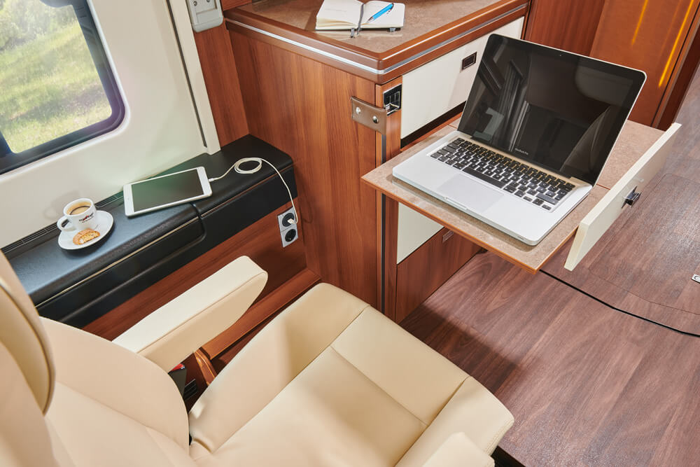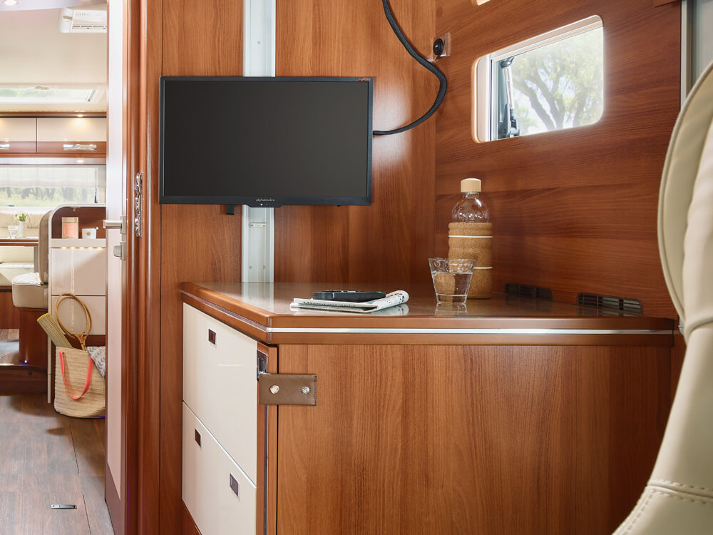 Les jours de pluie en vacances, on aime se retirer dans le confort de son camping-car et se mettre à l'aise à l'intérieur. C'est d'autant mieux si le camping-car offre des divertissements. Nous vous montrons, à l'aide de notre liner-for-two, comment vous pouvez vous installer confortablement dans votre camping-car les jours de pluie ou les soirées grâce à nos grands écrans plats.