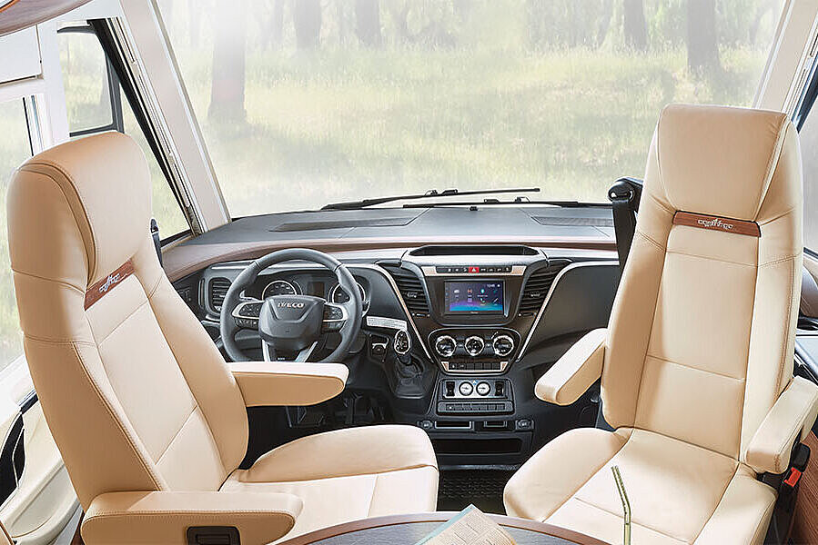 La sécurité à bord de nos chic s-plus et liner-for-two est plus élevée que jamais grâce aux nouveaux systèmes d'aide à la conduite d'Iveco. De nombreuses technologies innovantes ainsi que des systèmes de sécurité ultramodernes vous offrent en toute fiabilité une protection maximale. Vous pourrez ainsi vous concentrer pleinement sur vos vacances !