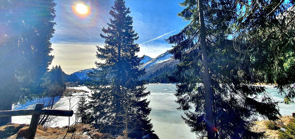 Als wir an einem wunderschönen zugefrorenen See vorbeikamen, konnten wir nicht widerstehen und hielten an.