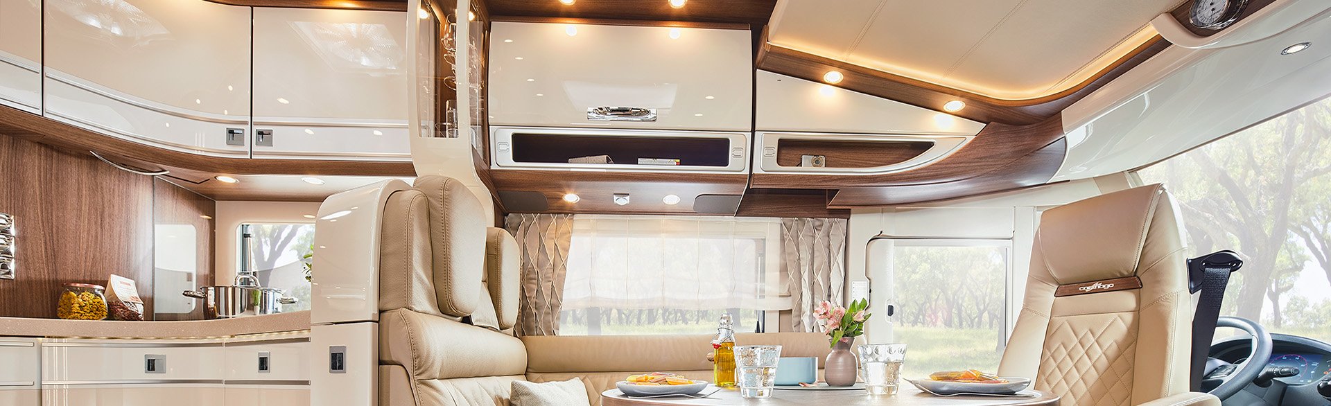 Per il camper integrale chic e-line è possibile scegliere tra innumerevoli tappezzerie. Le nostre collezioni di imbottiture non sono solo belle da vedere, ma offrono anche una serie di vantaggi pratici: