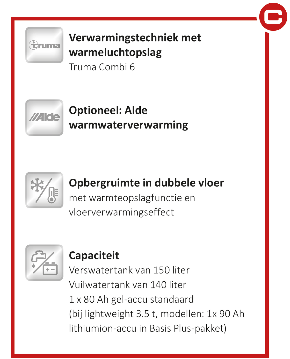 Om het u zo gemakkelijk mogelijk te maken het juiste model te kiezen, hebben we hier de verschillen in uitrusting beschreven tussen de modellen lightweight 3.5 t en comfort 4.2 t.