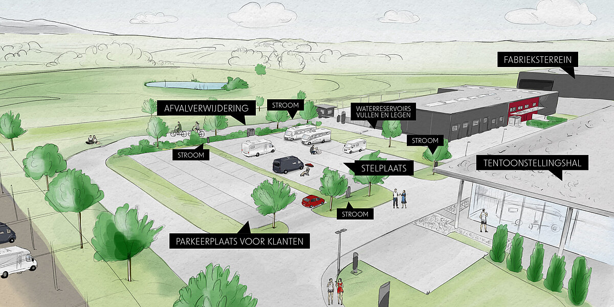 In de directe nabijheid van onze stijlvolle verkooptentoonstelling bent u aangekomen op de bestemming van uw dromen. En het beste is: het ontbreekt u werkelijk aan niets. Elektriciteits- en watervoorziening, afvalvoorzieningen en een recreatieprogramma met fabrieksrondleiding, fabriekswinkel, proefritten en bewegwijzerde wandel- en fietspaden – deze camperplaats is een echte publiekstrekker.