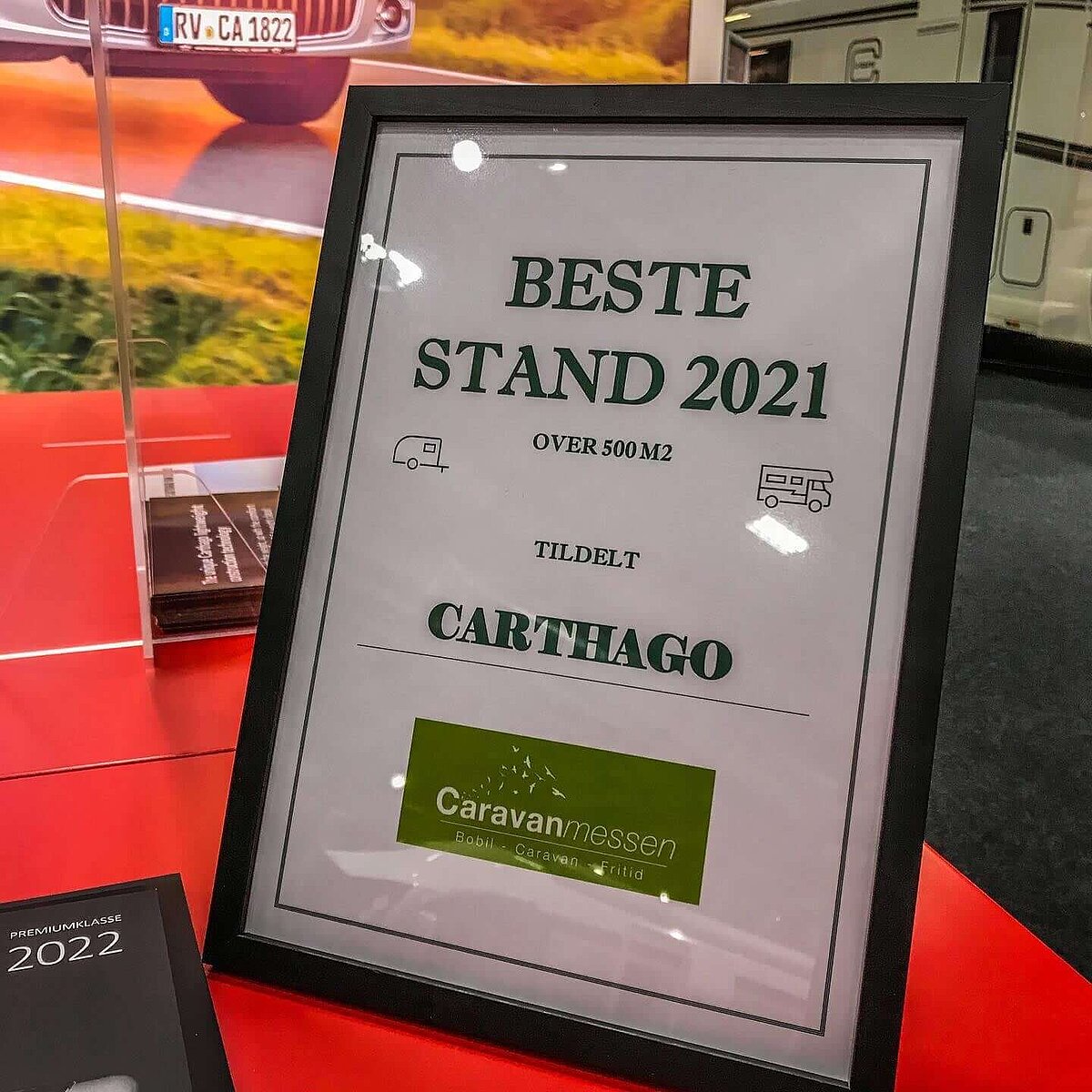 Lederen for den norske foreningen NCB, Konrad Sel, har blant annet valgt den vakreste utstillingsstanden på campingvognmessen i Lillestrøm over 500 m². Carthago -stativet er vinneren. Vi er glade for prisen. Tusen takk!