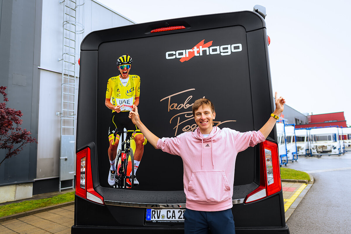 Tour-de-France-Gewinner Tadej Pogačar setzt auf Wohnmobil-Siegermarke: Carthago unterstützt Radrennfahrer erneut mit einem c-compactline