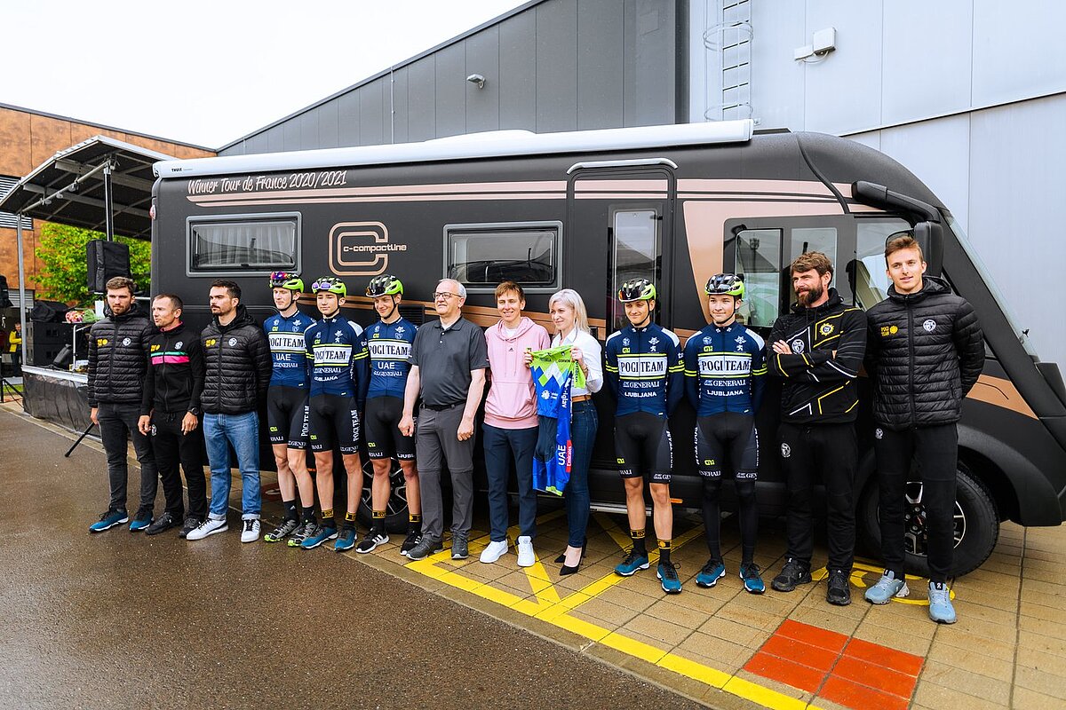 Never change a winning team: Getreu diesem Motto unterstützt Carthago den Weltklasse-Radrennfahrer Tadej Pogačar auch in diesem Jahr mit einem Wohnmobil. Basisquartier des Sportlers bei seinen Rennen in ganz Europa ist ein Carthago c-compactline. Die Übergabe am 7. Mai bot den willkommenen Anlass für eine gemeinsame Radtour der Beschäftigten des slowenischen Carthago Werk in Odranci mit ihrem Volkshelden sowie der Geschäftsführung.